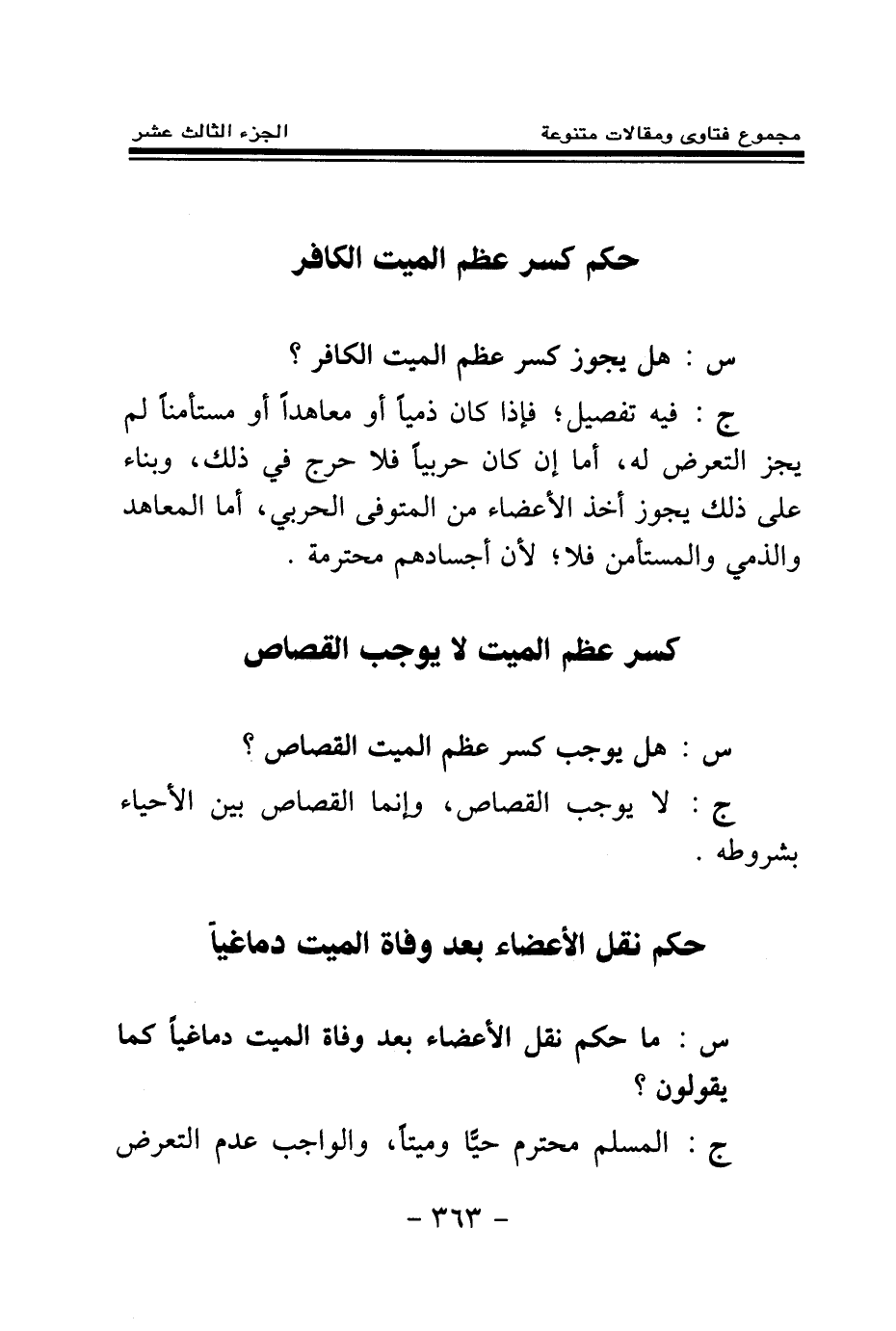 س: هل يجوز كسر عظم الميت الكافر؟ .