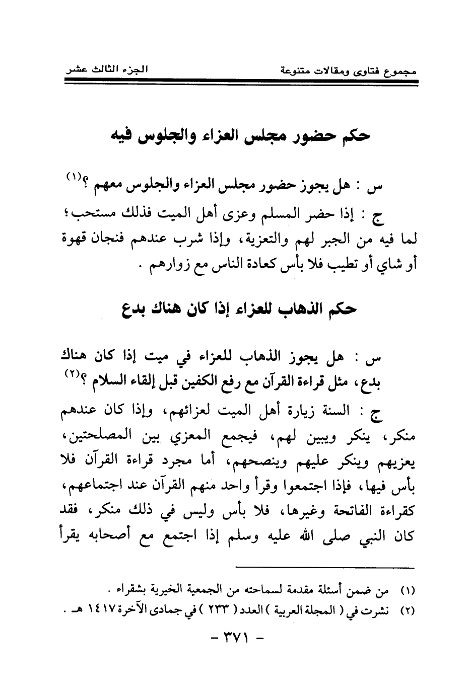 س: هل يجوز حضور مجلس العزاء والجلوس معهم؟ (¬1)