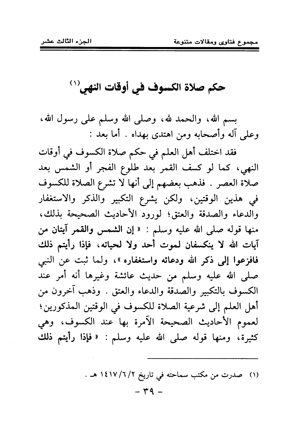 (¬1) صدرت من مكتب سماحته في تاريخ 2\6\1417هـ.