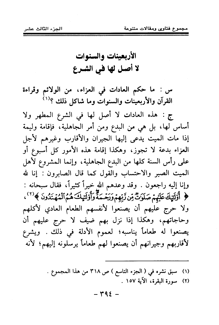 س: ما حكم العادات في العزاء، من الولائم وقراءة القرآن والأربعينات والسنوات وما شاكل ذلك؟ (¬1) .
