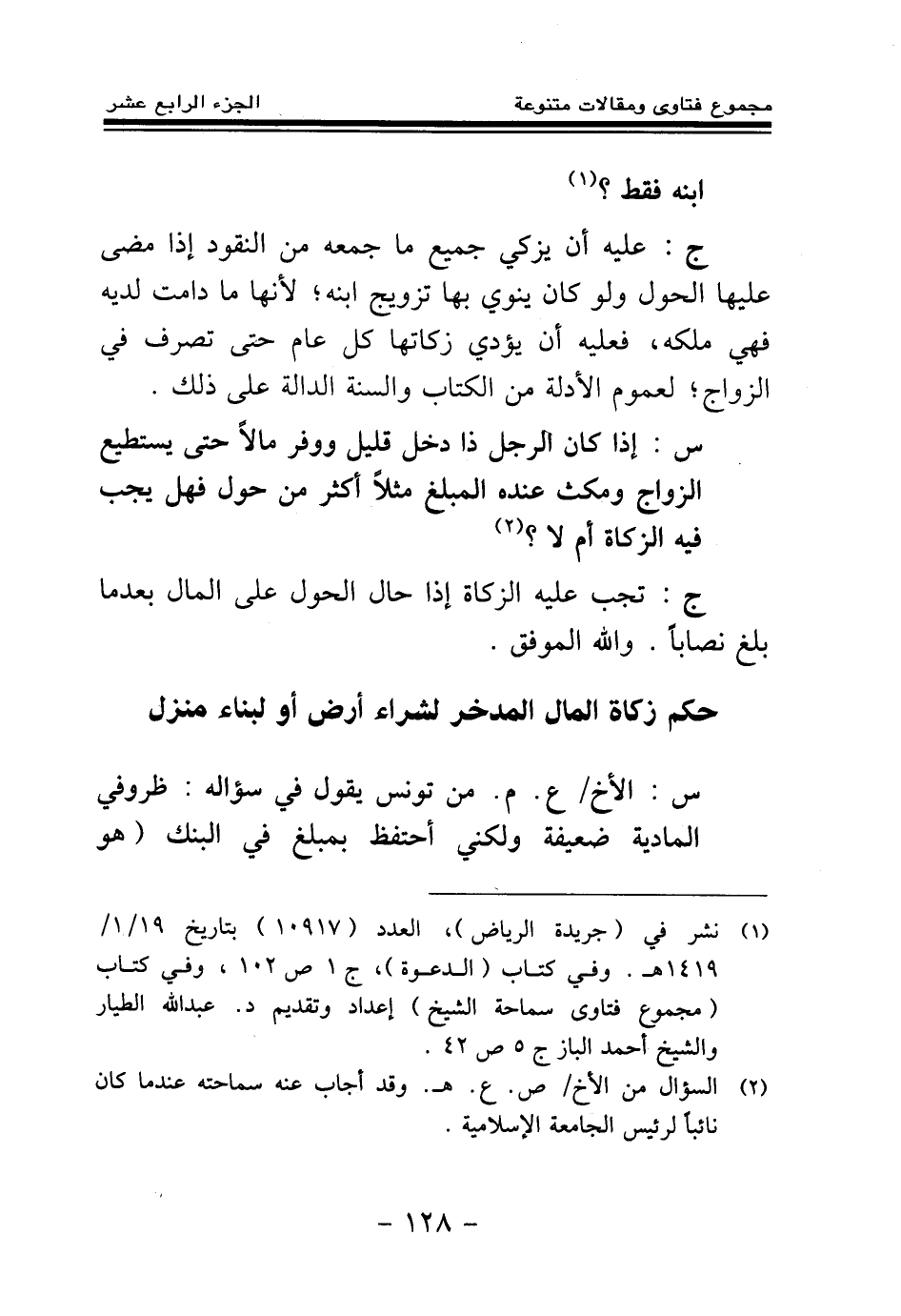 (¬1) السؤال من الأخ\ ص. ع. هـ. وقد أجاب عنه سماحته عندما كان نائبا لرئيس الجامعة الإسلامية.