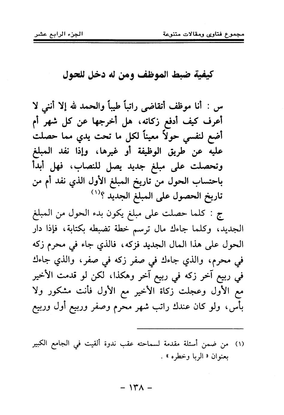 (¬1) من ضمن أسئلة مقدمة لسماحته عقب ندوة ألقيت في الجامع الكبير بعنوان '' الربا وخطره ''.