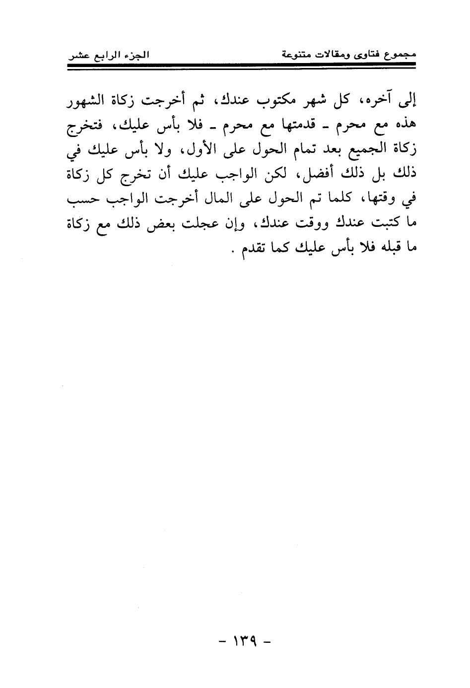 إلى آخره، كل شهر مكتوب عندك، ثم أخرجت زكاة الشهور هذه مع محرم- قدمتها مع محرم- فلا بأس عليك، فتخرج زكاة الجميع بعد تمام الحول على الأول، ولا بأس عليك في ذلك بل ذلك أفضل، لكن الواجب عليك أن تخرج كل زكاة في وقتها، كلما تم الحول على المال أخرجت الواجب حسب ما كتبت عندك ووقت عندك، وإن عجلت بعض ذلك مع زكاة ما قبله فلا بأس عليك كما تقدم.