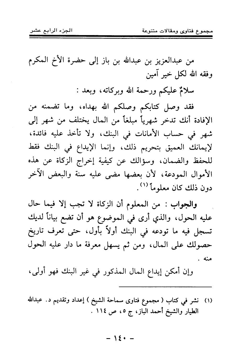 من عبد العزيز بن عبد الله بن باز إلى حضرة الأخ المكرم وفقه الله لكل خير آمين