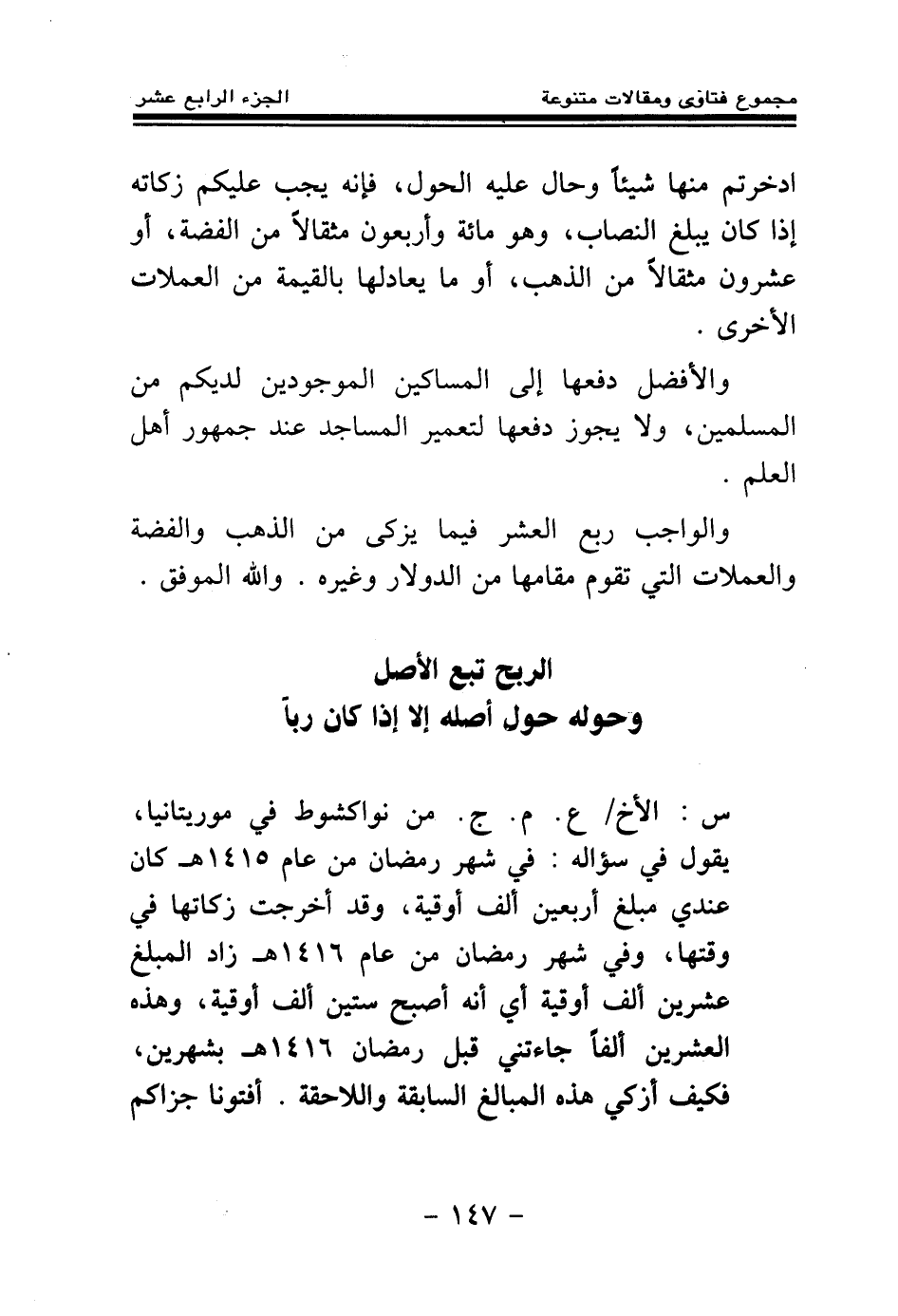 س: الأخ \ ع. م. ج. من نواكشوط في موريتانيا، يقول في سؤاله: في شهر رمضان من عام 1415 هـ كان عندي مبلغ أربعين ألف أوقية، وقد أخرجت زكاتها في وقتها، وفي شهر رمضان من عام 1416 هـ زاد المبلغ عشرين ألف أوقية أي أنه أصبح ستين ألف أوقية، وهذه العشرين ألفا جاءتني قبل رمضان 1416 هـ بشهرين، فكيف أزكي هذه المبالغ السابقة واللاحقة. أفتونا جزاكم