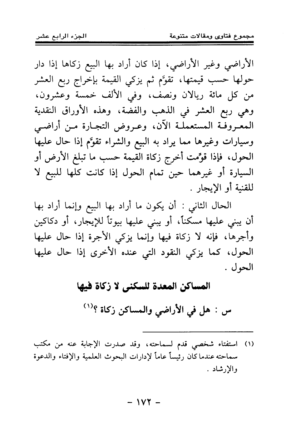 المساكن المعدة للسكنى لا زكاة فيها