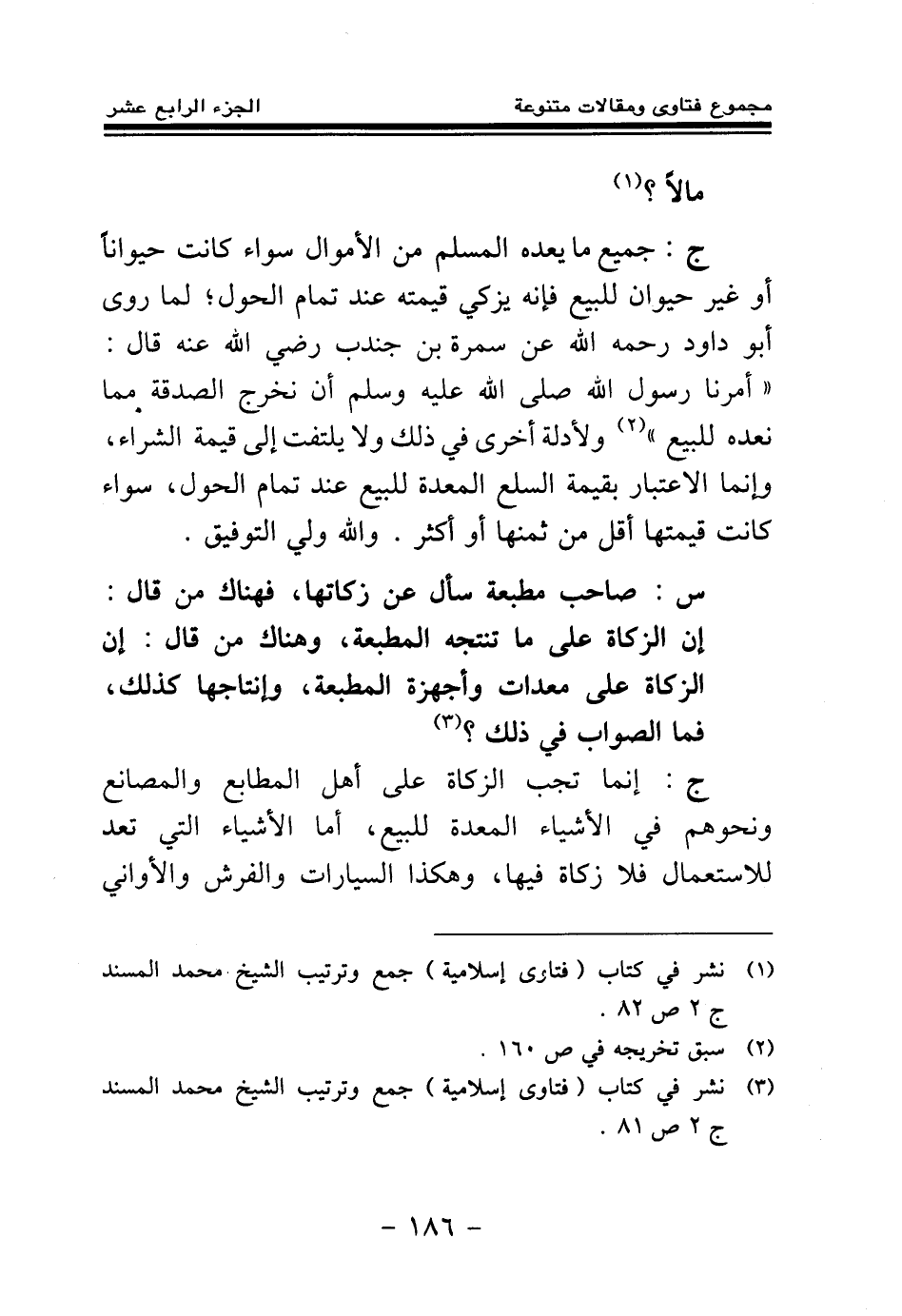 س: صاحب مطبعة سأل عن زكاتها، فهناك من قال: إن الزكاة على ما تنتجه المطبعة، وهناك من قال: إن الزكاة على معدات وأجهزة المطبعة، وإنتاجها كذلك، فما الصواب في ذلك؟ (¬1)
