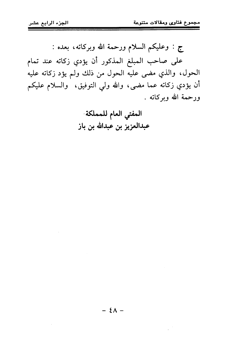 ج: وعليكم السلام ورحمة الله وبركاته، بعده:
