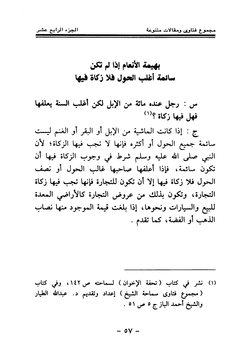 س: رجل عنده مائة من الإبل لكن أغلب السنة يعلفها فهل فيها زكاة؟ .