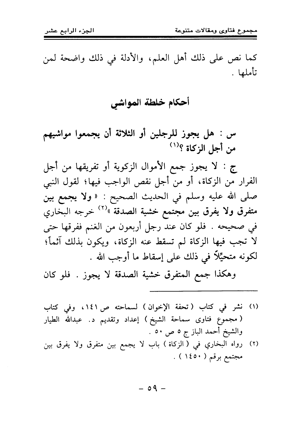 س: هل يجوز للرجلين أو الثلاثة أن يجمعوا مواشيهم من أجل الزكاة؟ .