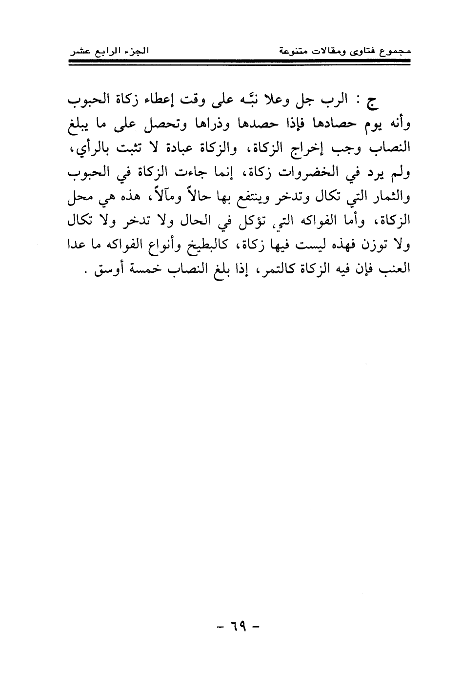 ج: الرب جل وعلا نبه على وقت إعطاء زكاة الحبوب، وأنه يوم حصادها، فإذا حصدها وذراها وتحصل على ما يبلغ النصاب وجب إخراج الزكاة، والزكاة عبادة لا تثبت بالرأي، ولم يرد في الخضروات زكاة، إنما جاءت الزكاة في الحبوب والثمار التي تكال وتدخر وينتفع بها حالا ومآلا، هذه هي محل الزكاة، وأما الفواكه التي تؤكل في الحال ولا تدخر ولا تكال ولا توزن فهذه ليست فيها زكاة، كالبطيخ وأنواع الفواكه ما عدا العنب فإن فيه الزكاة كالتمر، إذا بلغ النصاب خمسه أوسق.