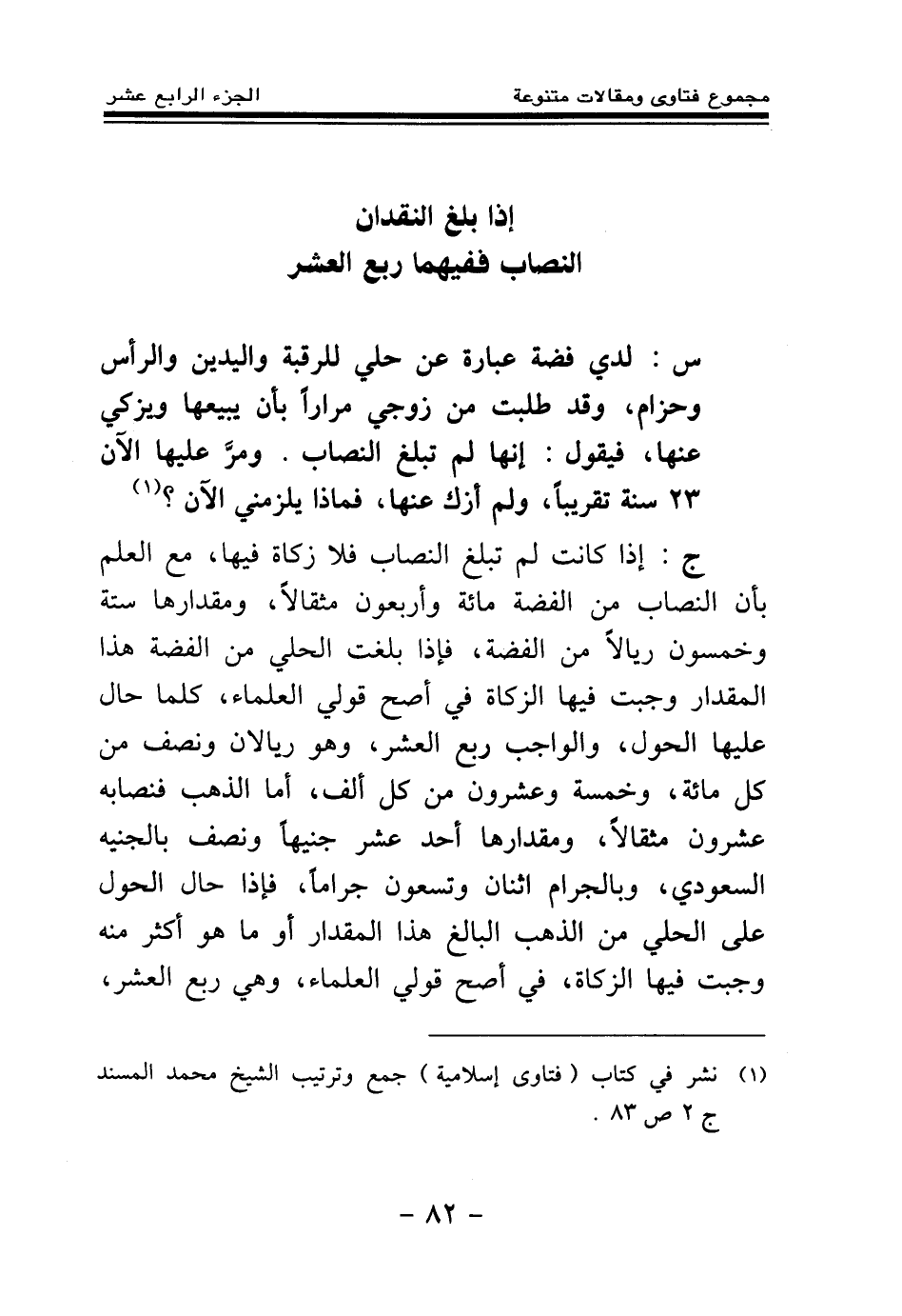 (¬1) نشر في كتاب (فتاوى إسلامية) جمع وترتيب الشيخ محمد المسند ج2 ص83.