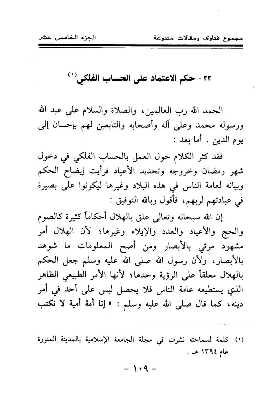 22 - حكم الاعتماد على الحساب الفلكي (¬1)
