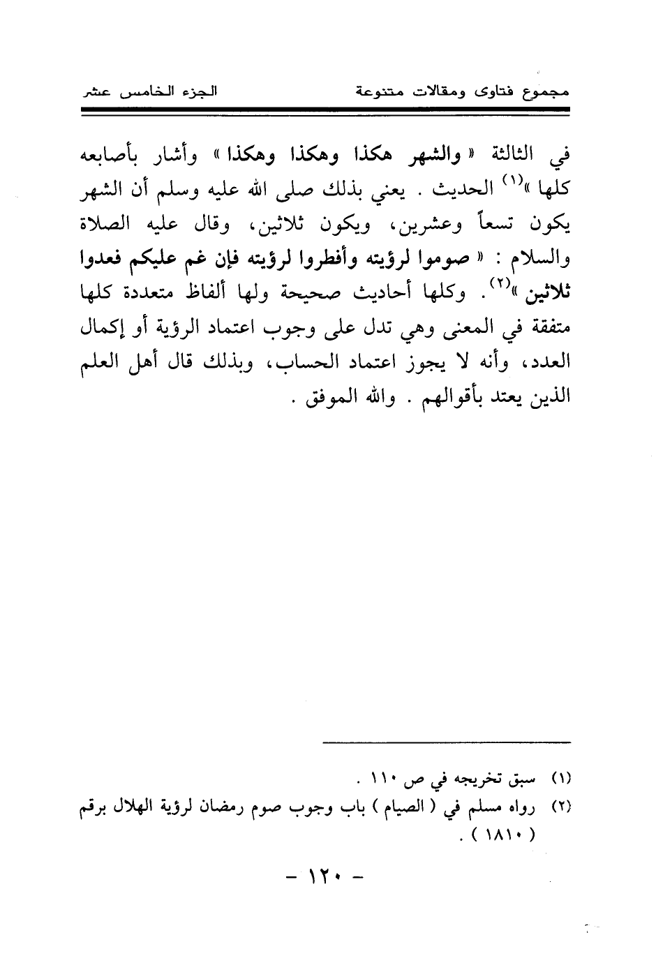 (¬2) رواه مسلم في (الصيام) باب وجوب صوم رمضان لرؤية الهلال برقم (1810) .