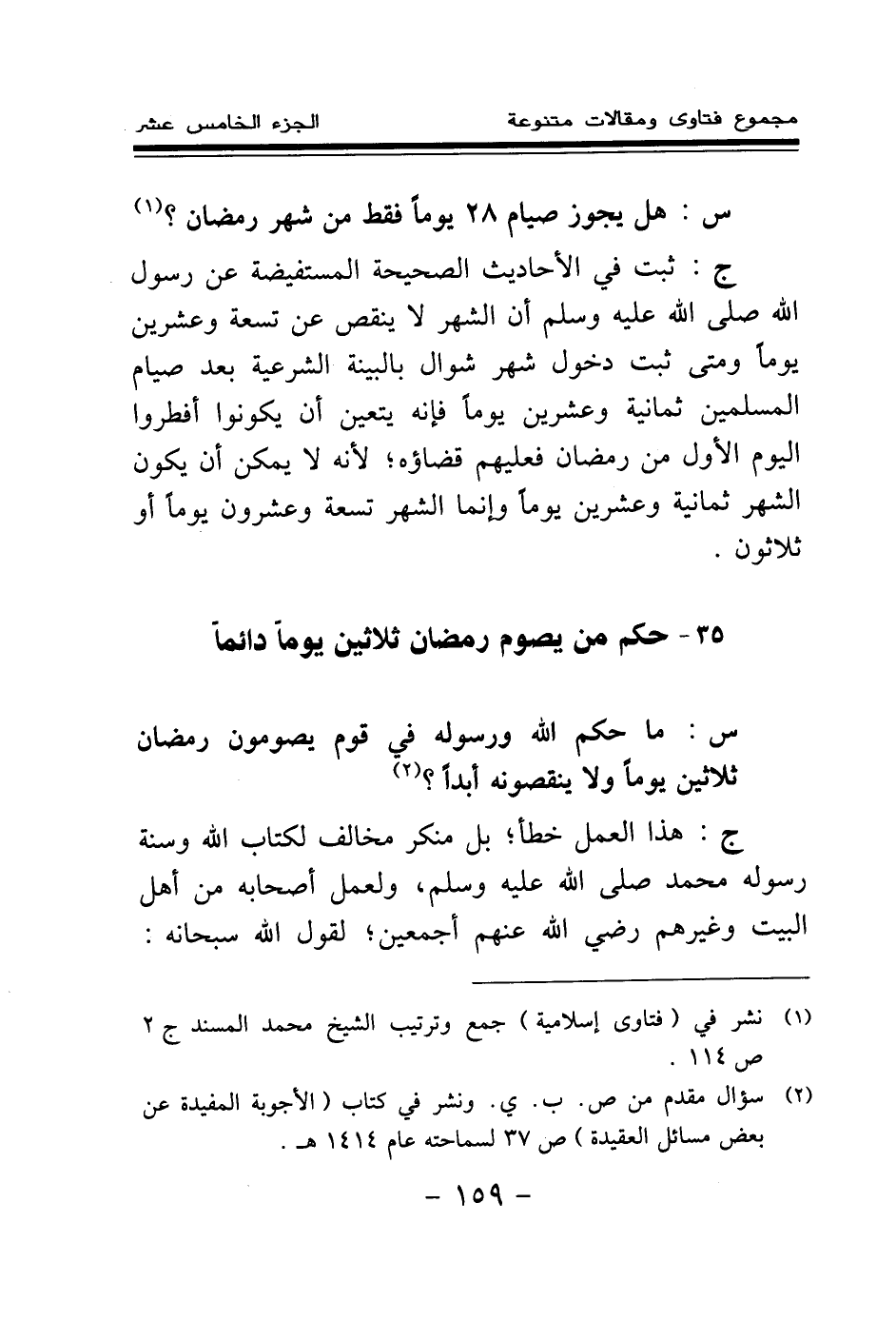 س: هل يجوز صيام 28 يوما فقط من شهر رمضان؟ (¬1)