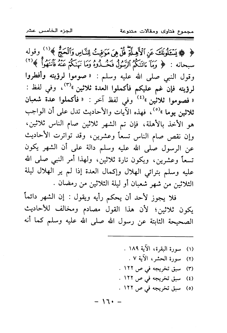 (¬5) رواه البخاري في (الصوم) باب قول النبي صلى الله عليه وسلم: ''إذا رأيتم الهلال فصوموا''. برقم (1909) .