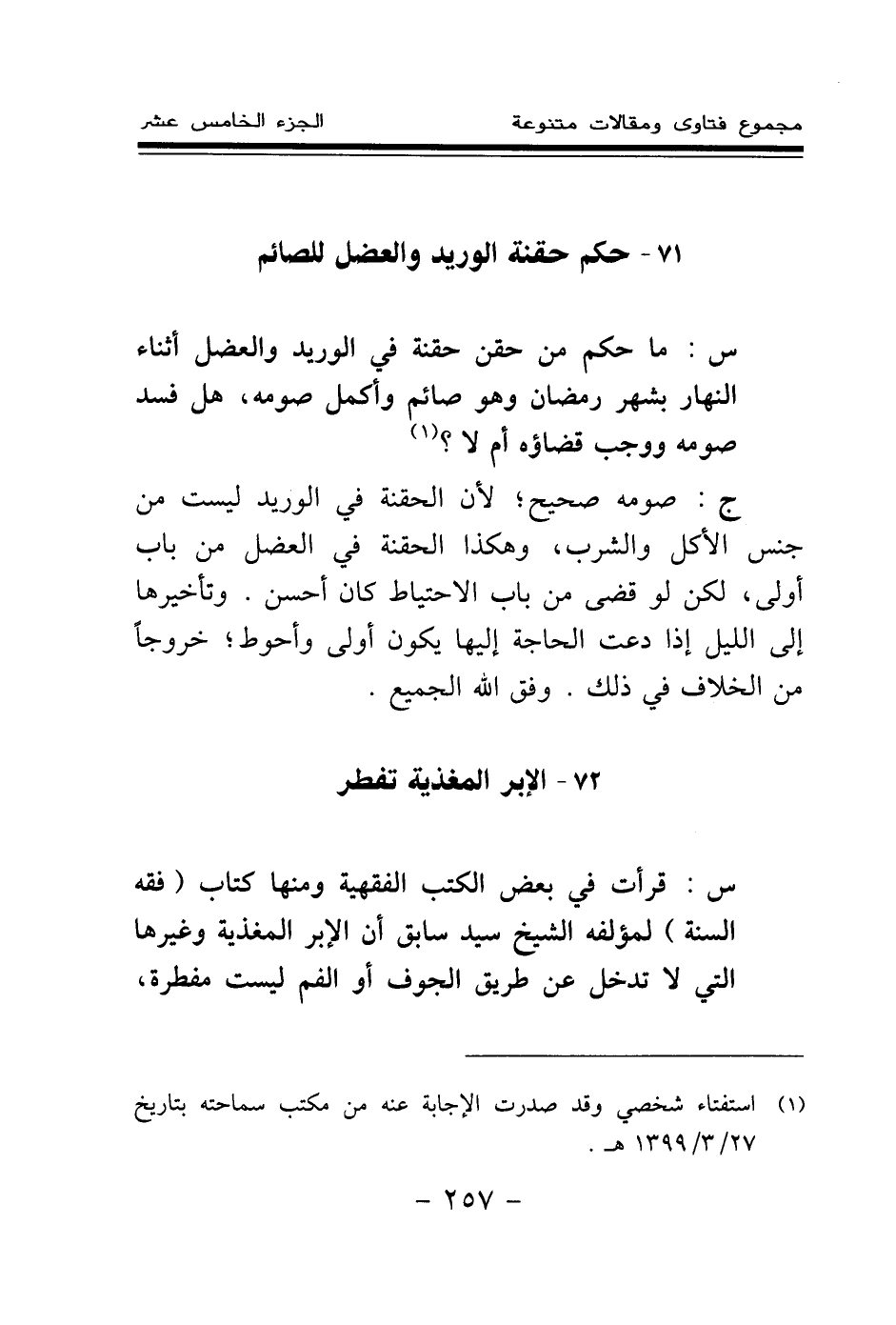 71 - حكم حقنة الوريد والعضل للصائم