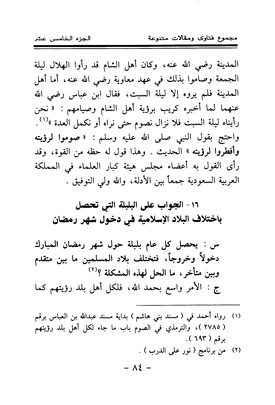 16 - الجواب على البلبلة التي تحصل باختلاف البلاد الإسلامية في دخول شهر رمضان