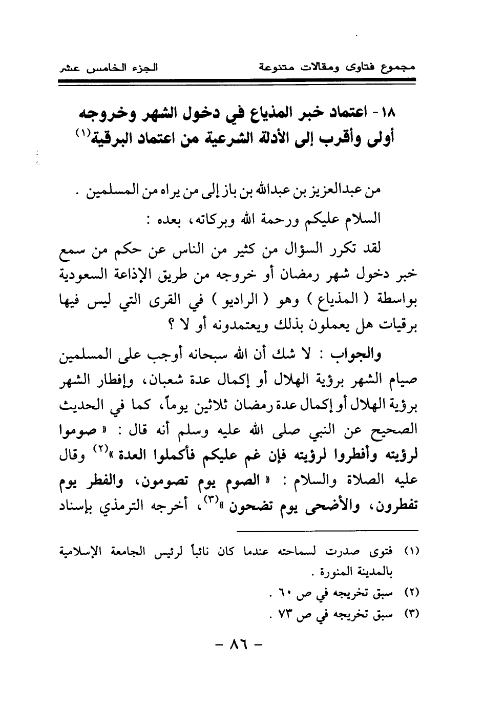 18 - اعتماد خبر المذياع في دخول الشهر وخروجه