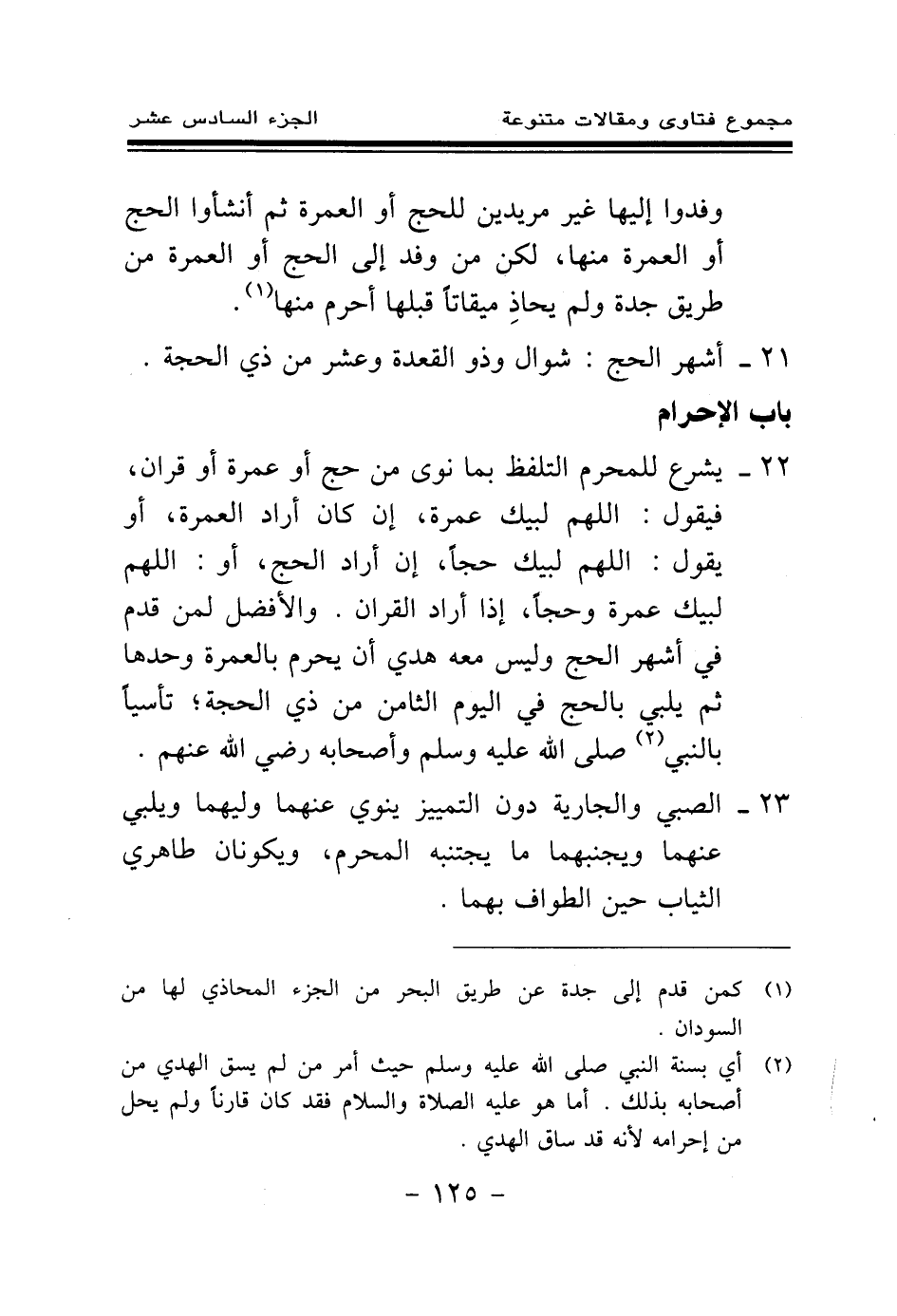 22 - يشرع للمحرم التلفظ بما نوى من حج أو عمرة أو قران، فيقول: اللهم لبيك عمرة، إن كان أراد العمرة، أو يقول: اللهم لبيك حجا، إن أراد الحج، أو: اللهم لبيك عمرة وحجا، إذا أراد القران.