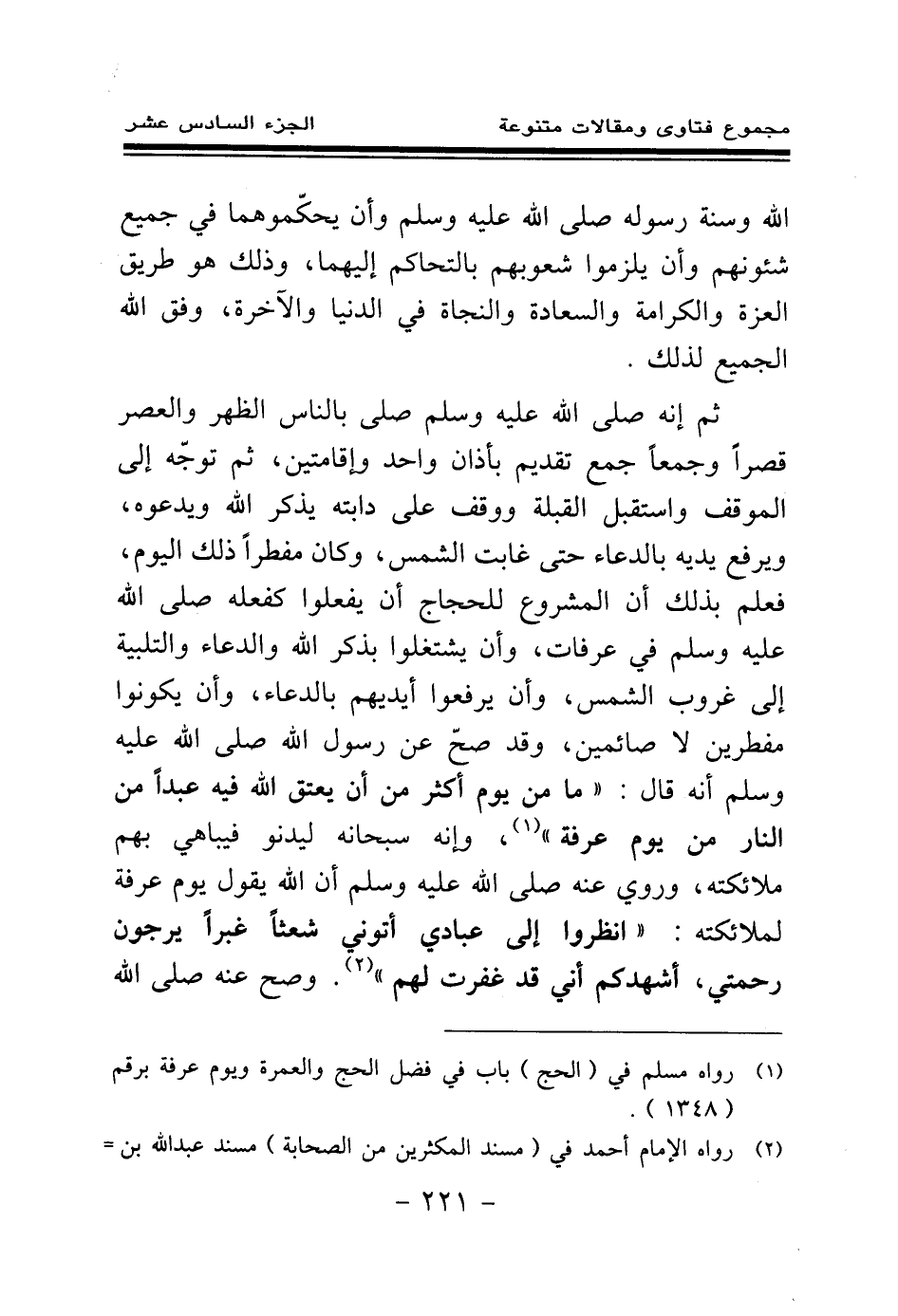 (¬1) رواه مسلم في (الحج) باب في فضل الحج والعمرة ويوم عرفة برقم (1348) .