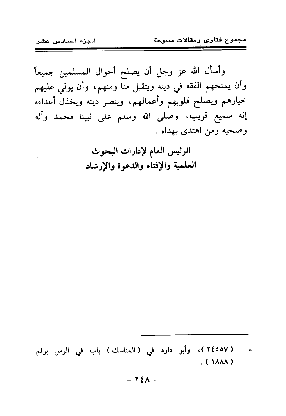 وأسأل الله عز وجل أن يصلح أحوال المسلمين جميعا وأن يمنحهم الفقه في دينه ويتقبل منا ومنهم، وأن يولي عليهم خيارهم ويصلح قلوبهم وأعمالهم، وينصر دينه ويخذل أعداءه إنه سميع قريب، وصلى الله وسلم على نبينا محمد وآله وصحبه ومن اهتدى بهداه.