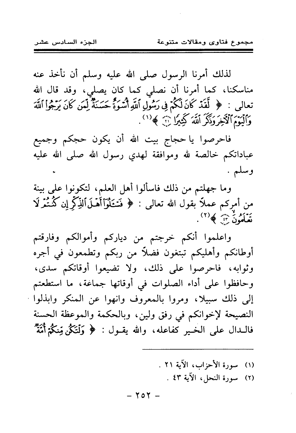 وما جهلتم من ذلك فاسألوا أهل العلم، لتكونوا على بينة من أمركم عملا بقول الله تعالى: {فَاسْأَلُوا أَهْلَ الذِّكْرِ إِنْ كُنْتُمْ لَا تَعْلَمُونَ} (¬2)