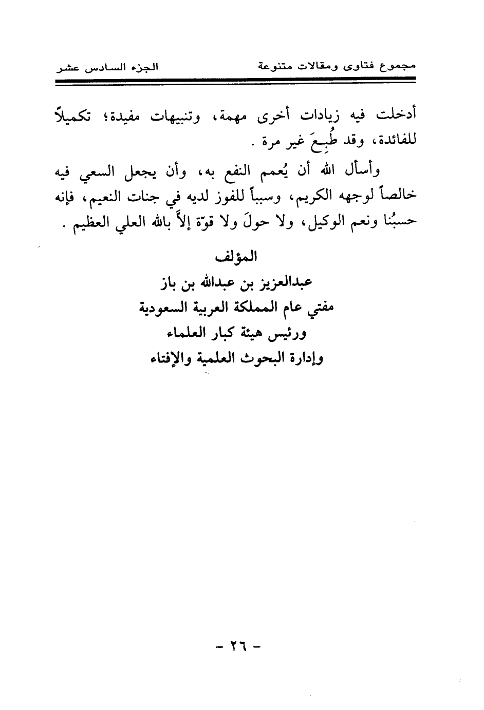 وأسأل الله أن يعمم النفع به، وأن يجعل السعي فيه خالصا لوجهه الكريم، وسببا للفوز لديه في جنات النعيم، فإنه حسبنا ونعم الوكيل، ولا حول ولا قوة إلا بالله العلي العظيم.