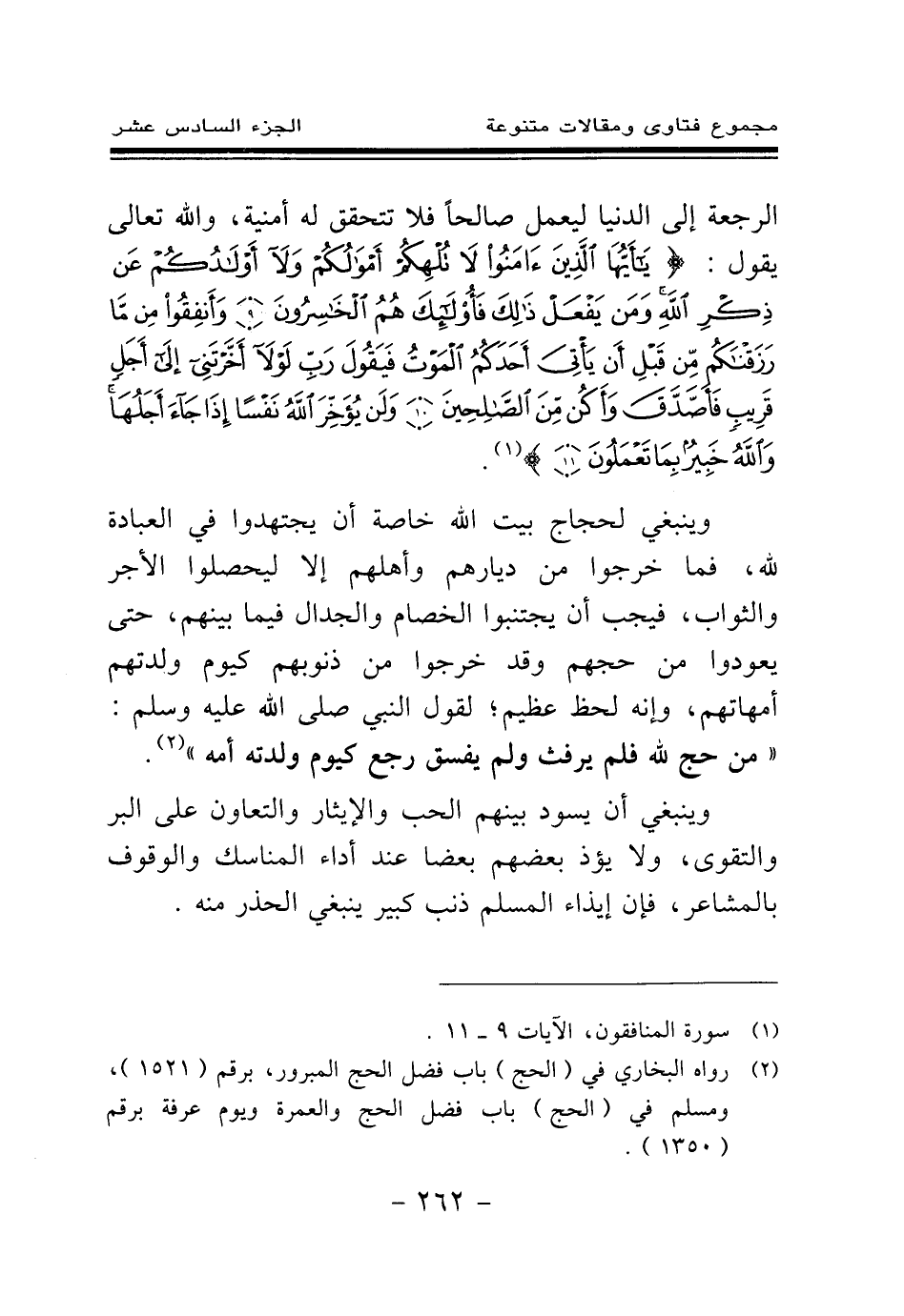 (¬4) رواه البخاري في (الحج) باب فضل الحج المبرور، برقم (1521) ، ومسلم في (الحج) باب فضل الحج والعمرة ويوم عرفة برقم (1350) .