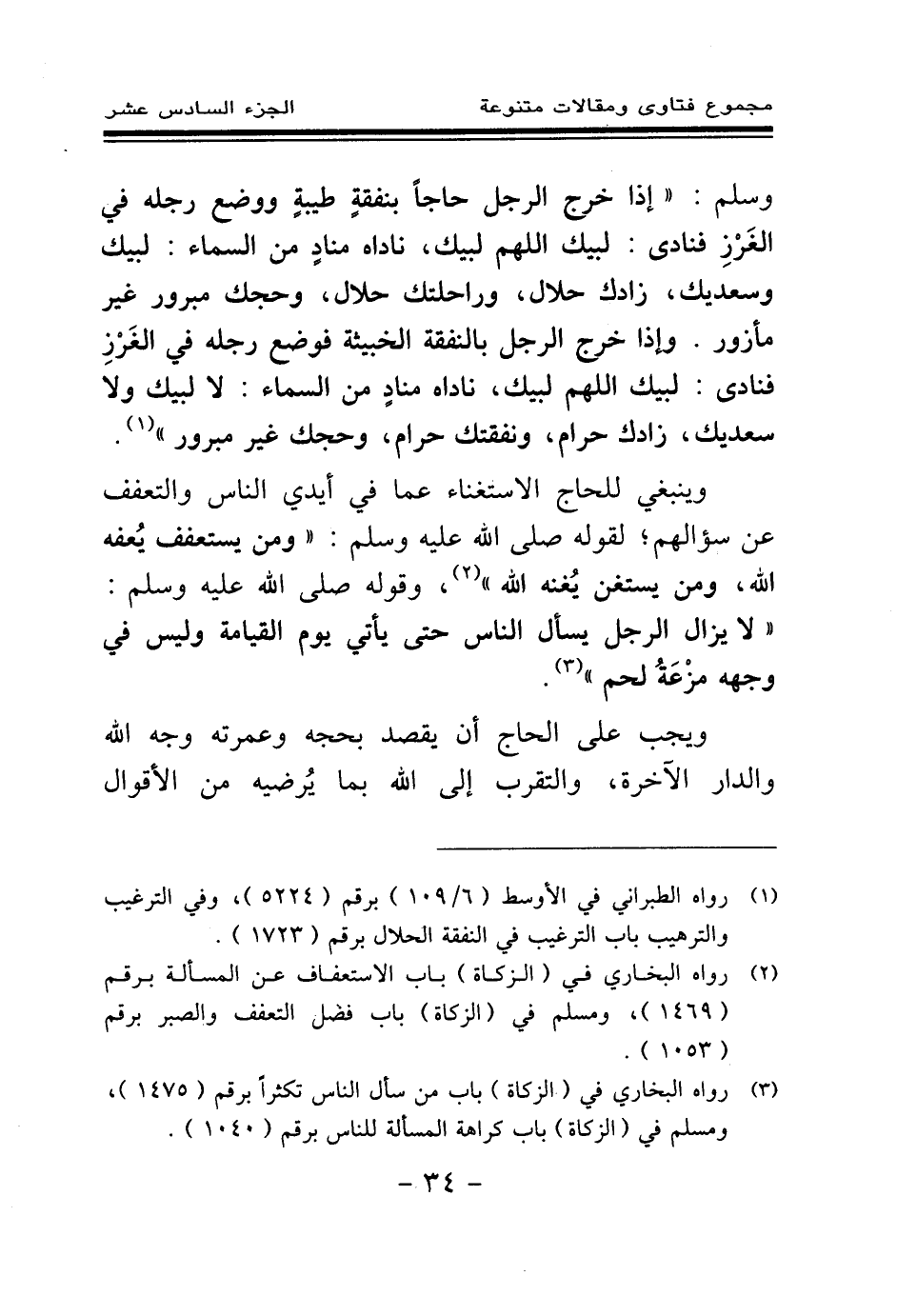 وينبغي للحاج الاستغناء عما في أيدي الناس والتعفف عن سؤالهم؛ لقوله صلى الله عليه وسلم: «ومن يستعفف يعفه الله ومن يستغن يغنه الله (¬2) » ، وقوله صلى الله عليه وسلم: «لا يزال الرجل يسأل الناس حتى يأتي يوم القيامة وليس في وجهه مزعة لحم (¬3) » .