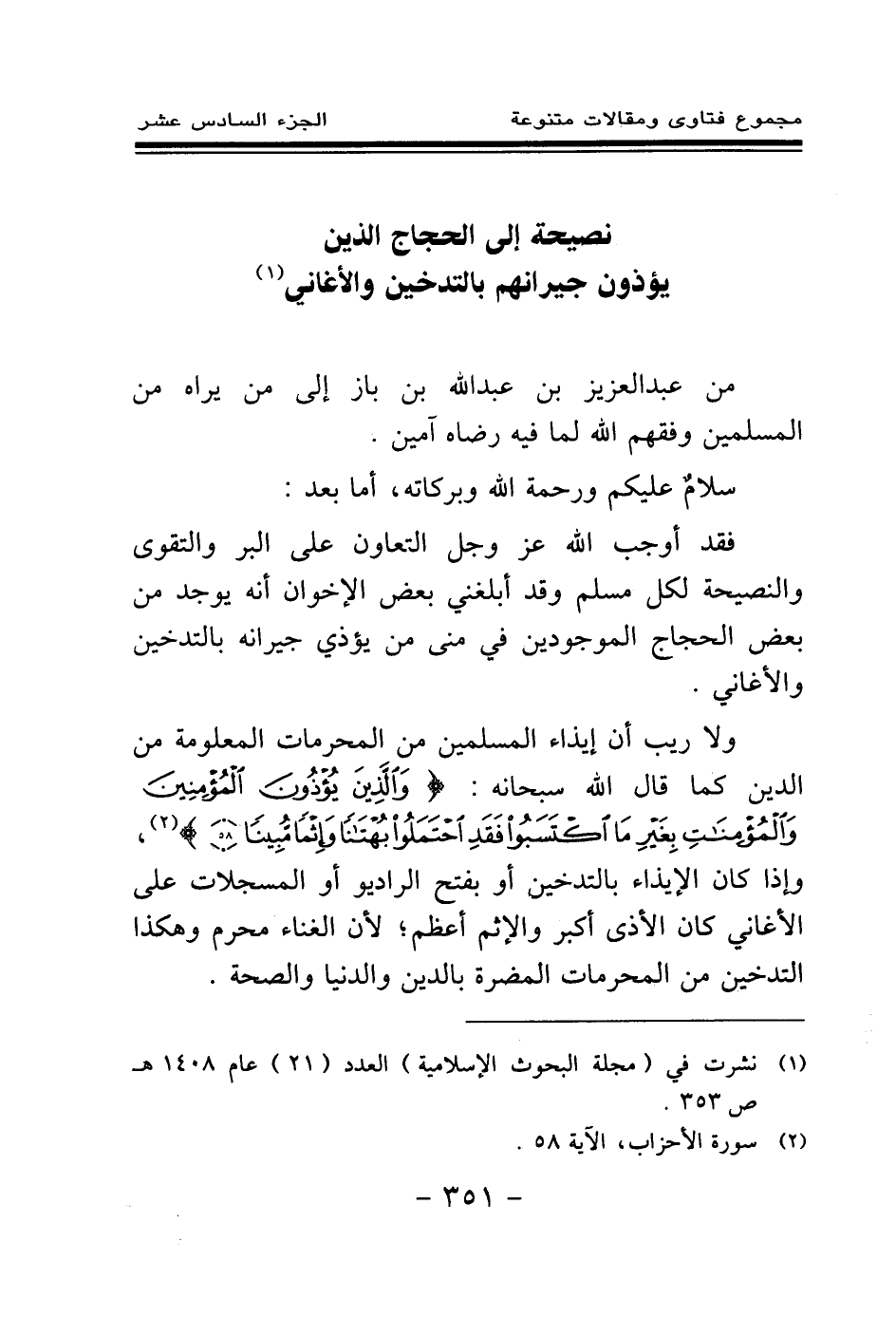 نصيحة إلى الحجاج الذين يؤذون جيرانهم بالتدخين والأغاني (¬1) .