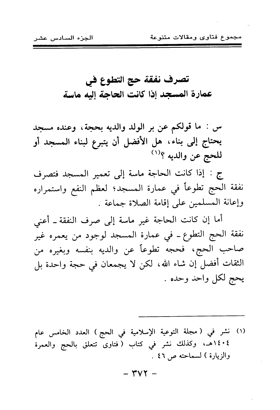 تصرف نفقة حج التطوع في عمارة المسجد إذا كانت الحاجة إليه ماسة