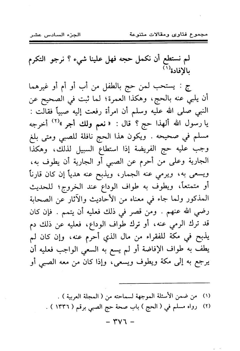 (¬2) رواه مسلم في (الحج) باب صحة حج الصبي برقم (1336) .
