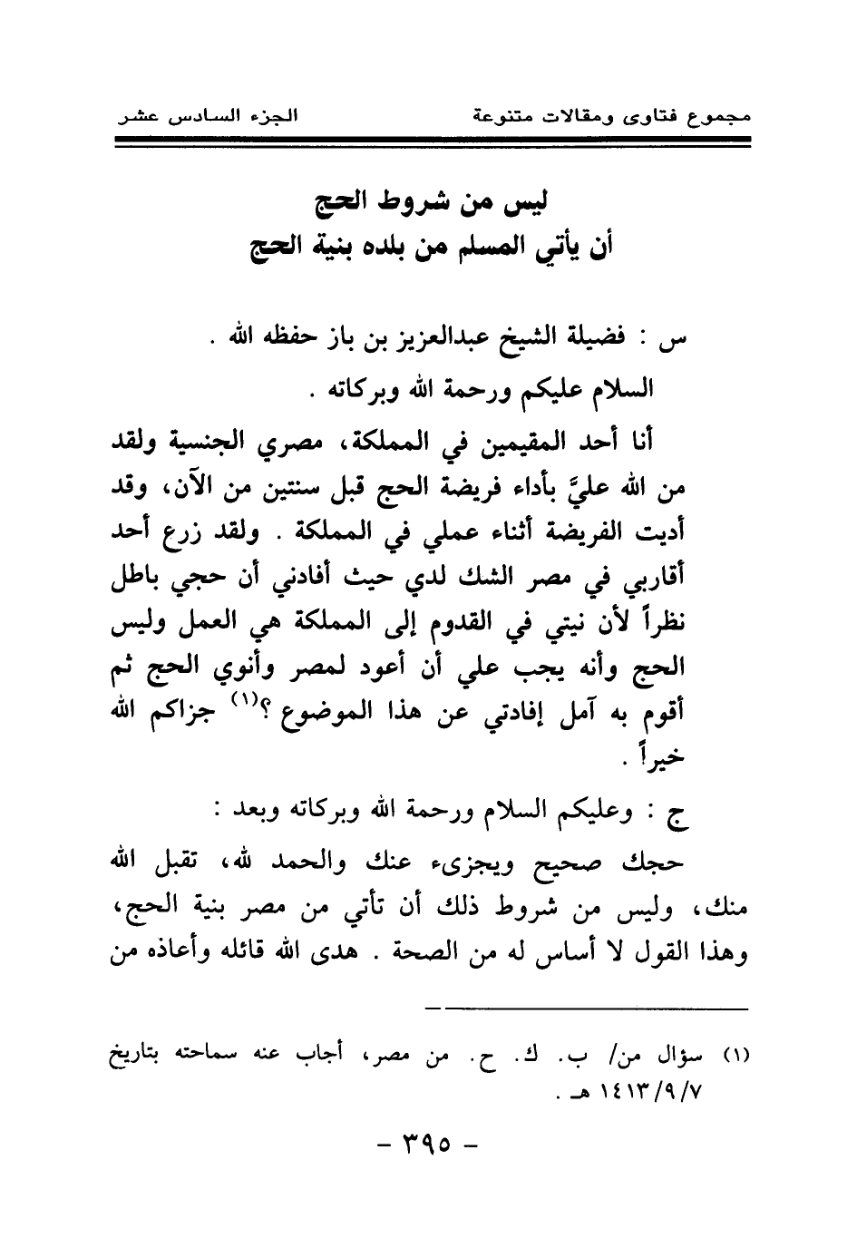 (¬1) سؤال من \ ب. ك. ح. من مصر، أجاب عنه سماحته بتاريخ 7 \ 9 \ 1413هـ.