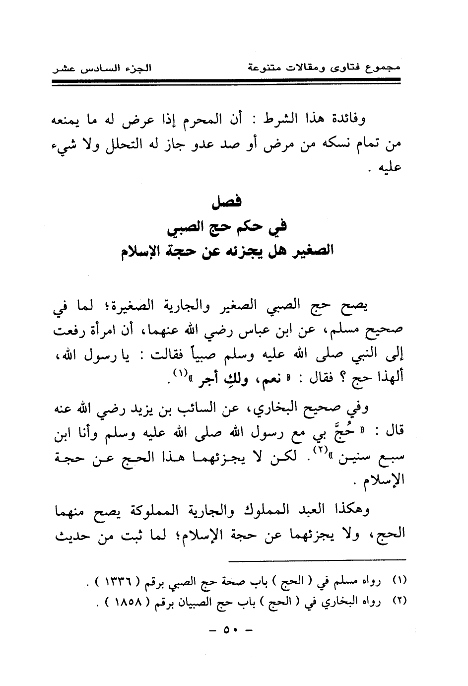 (¬2) رواه البخاري في (الحج) باب حج الصبيان برقم (1858) .