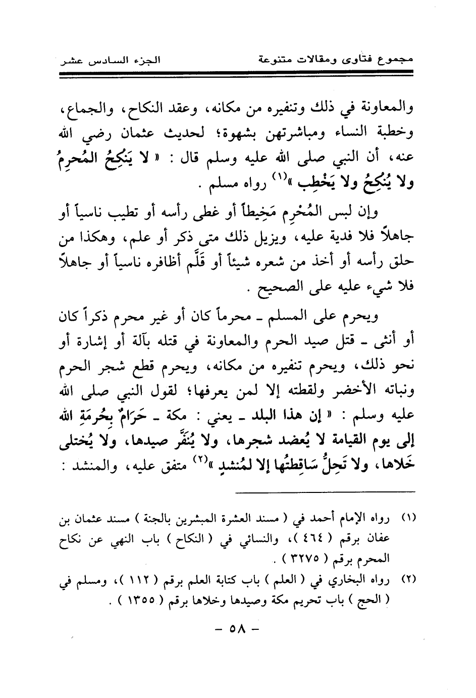 (¬1) رواه الإمام أحمد في (مسند العشرة المبشرين بالجنة) مسند عثمان بن عفان برقم (464) ، والنسائي في (النكاح) باب النهي عن نكاح المحرم برقم (3275) .
