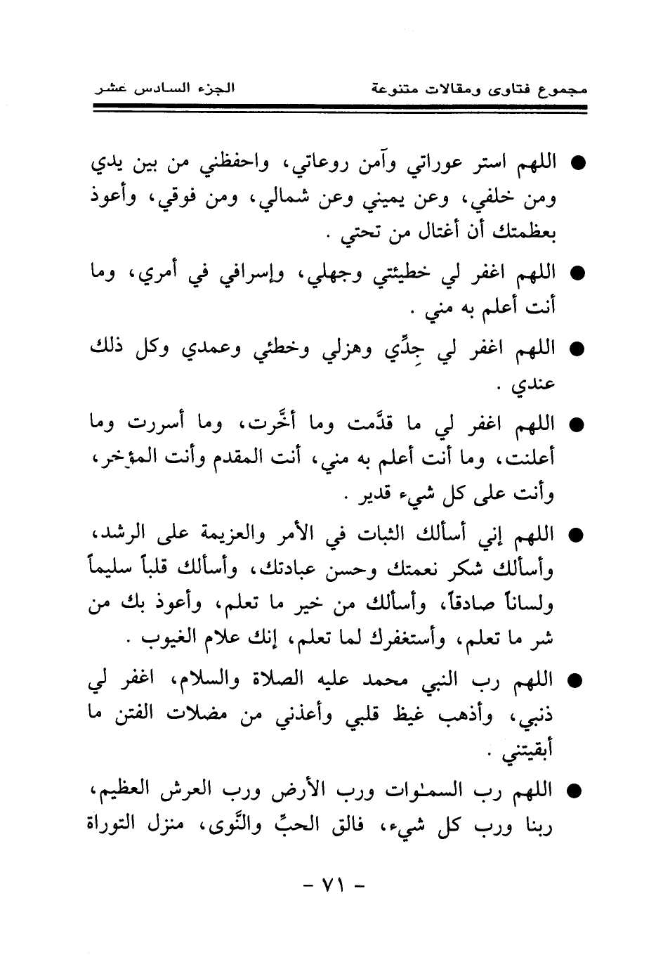 * اللهم رب النبي محمد عليه الصلاة والسلام، اغفر لي ذنبي، وأذهب غيظ قلبي وأعذني من مضلات الفتن ما أبقيتني.