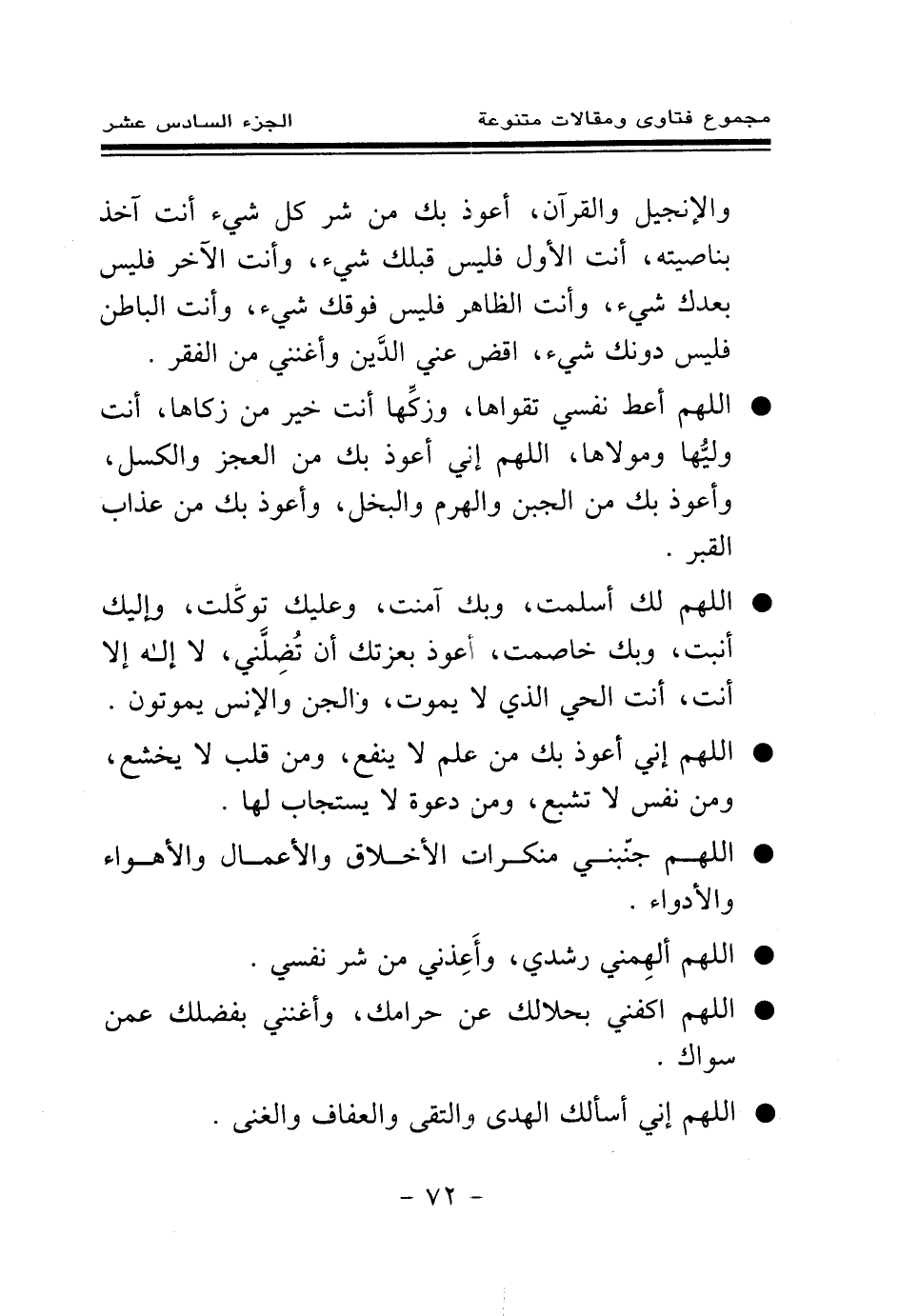 * اللهم أعط نفسي تقواها، وزكها أنت خير من زكاها، أنت وليها ومولاها، اللهم إني أعوذ بك من العجز والكسل، وأعوذ بك من الجبن والهرم والبخل، وأعوذ بك من عذاب القبر.