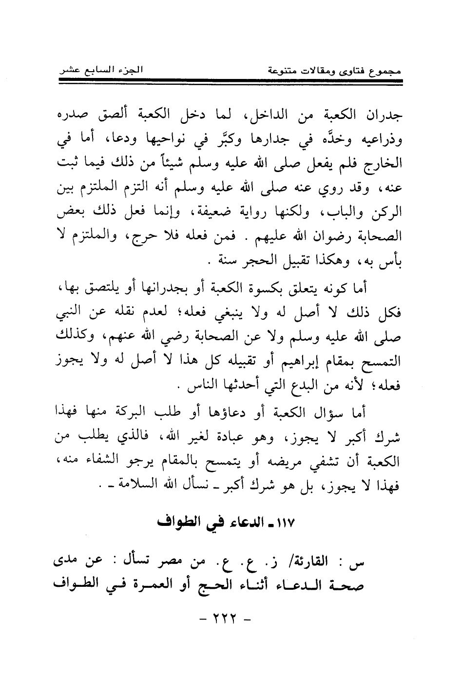 س: القارئة \ ز. ع. ع. من مصر تسأل: عن مدى صحة الدعاء أثناء الحج أو العمرة في الطواف