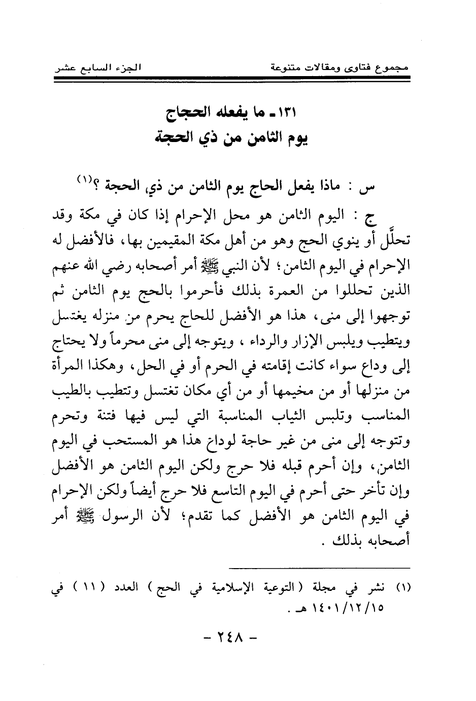 131 - ما يفعله الحجاج يوم الثامن من ذي الحجة