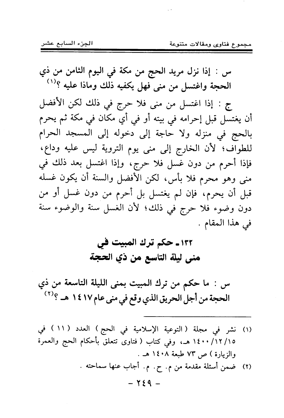 132 - حكم ترك المبيت في منى ليلة التاسع من ذي الحجة