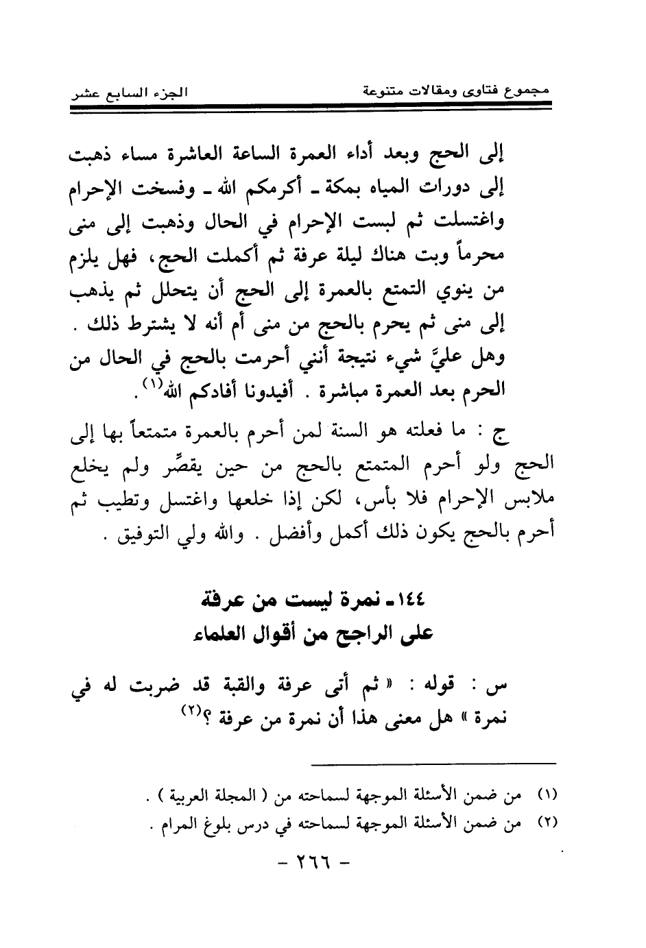 144 - نمرة ليست من عرفة على الراجح من أقوال العلماء