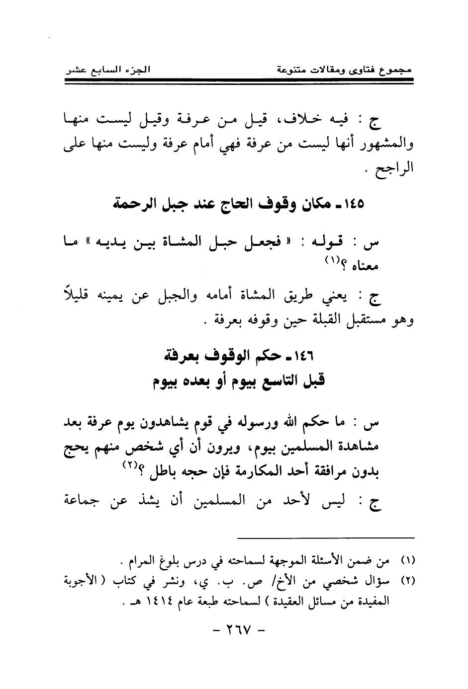 146- حكم الوقوف بعرفة قبل التاسع بيوم أو بعده بيوم