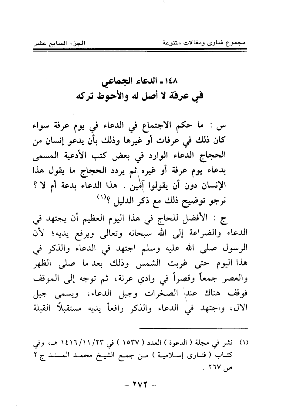 148 - الدعاء الجماعي في عرفة لا أصل له والأحوط تركه