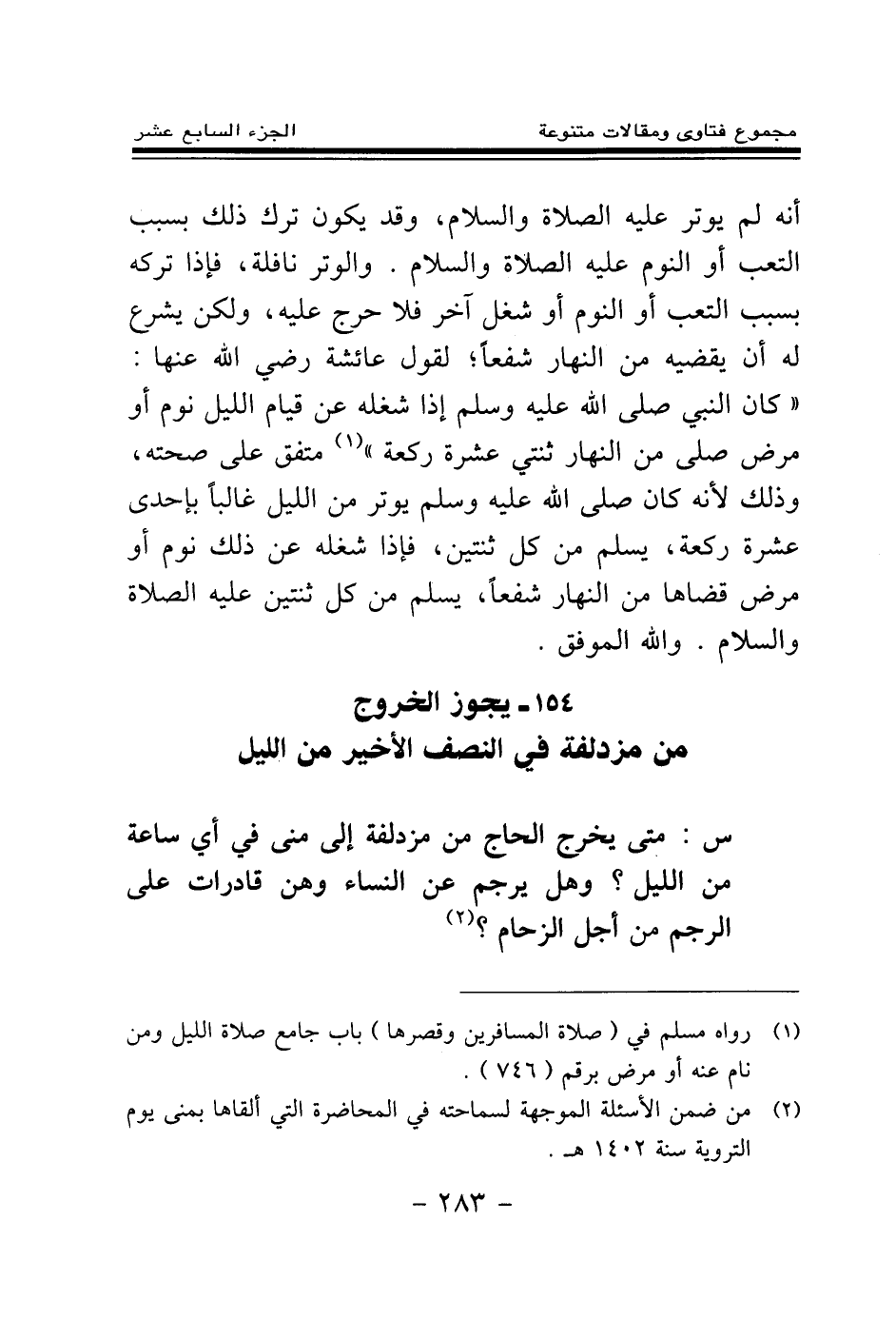 154 - يجوز الخروج من مزدلفة في النصف الأخير من الليل