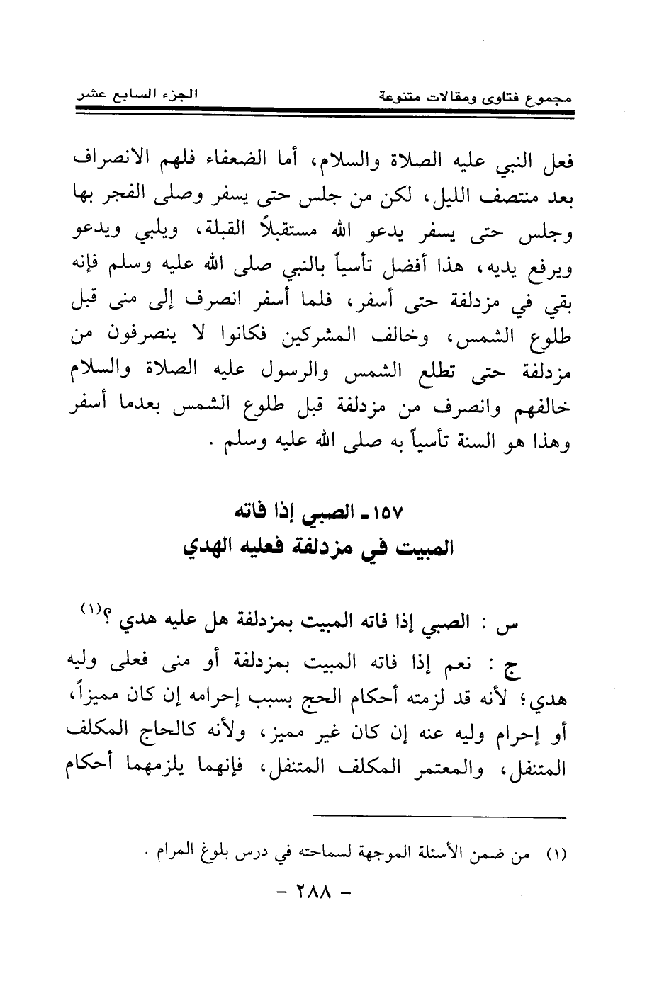 س: الصبي إذا فاته المبيت بمزدلفة هل عليه هدي؟ (¬1) .