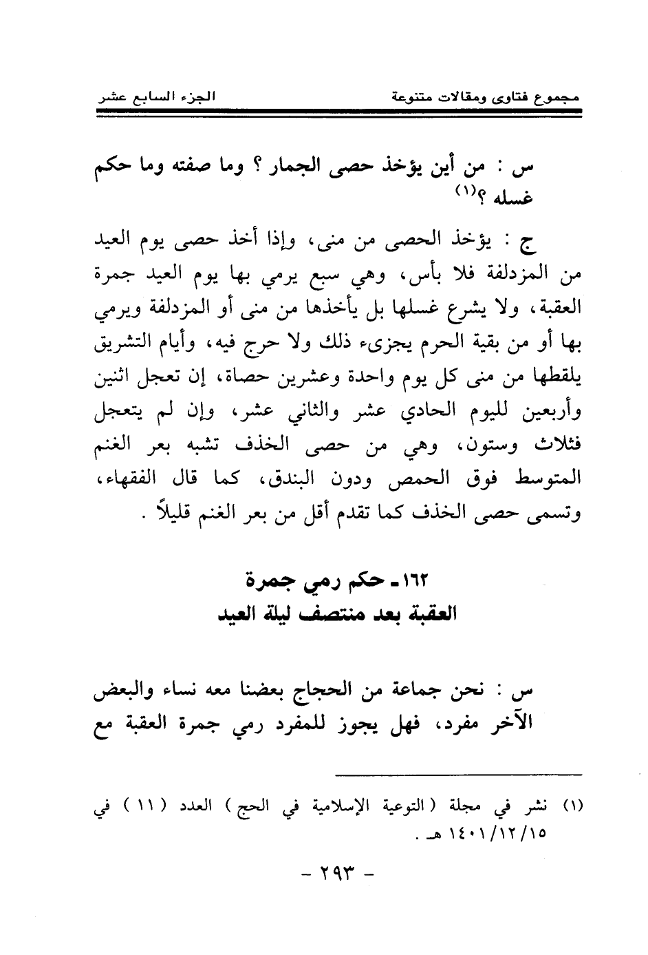 (¬1) نشر في مجلة (التوعية الإسلامية في الحج) العدد (11) في 15 \ 12 \ 1401 هـ.