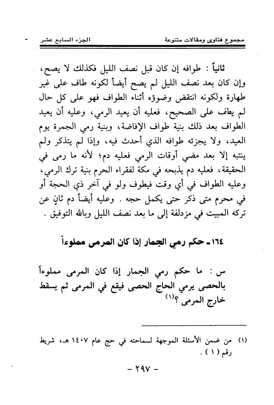 (¬1) من ضمن الأسئلة الموجهة لسماحته في حج عام 1407 هـ، شريط رقم (1) .