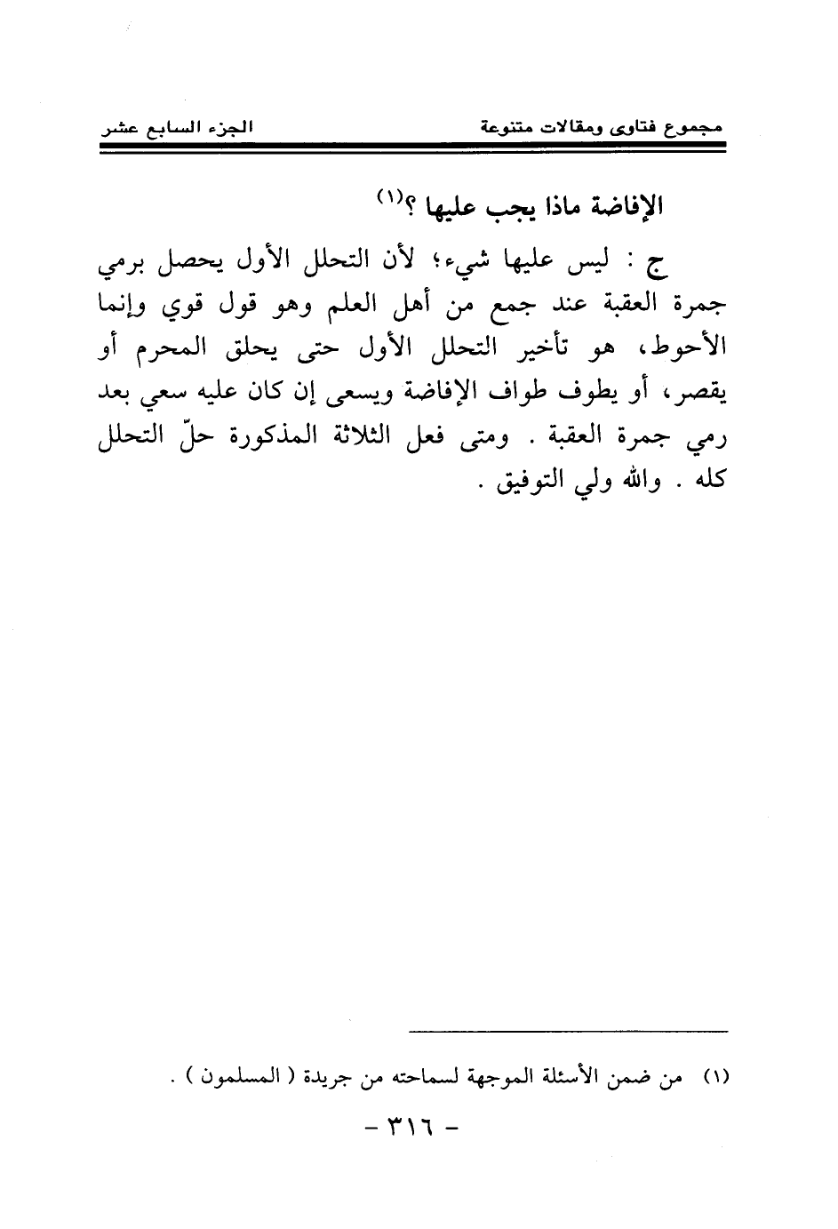 الإفاضة ماذا يجب عليها؟ (¬1) .