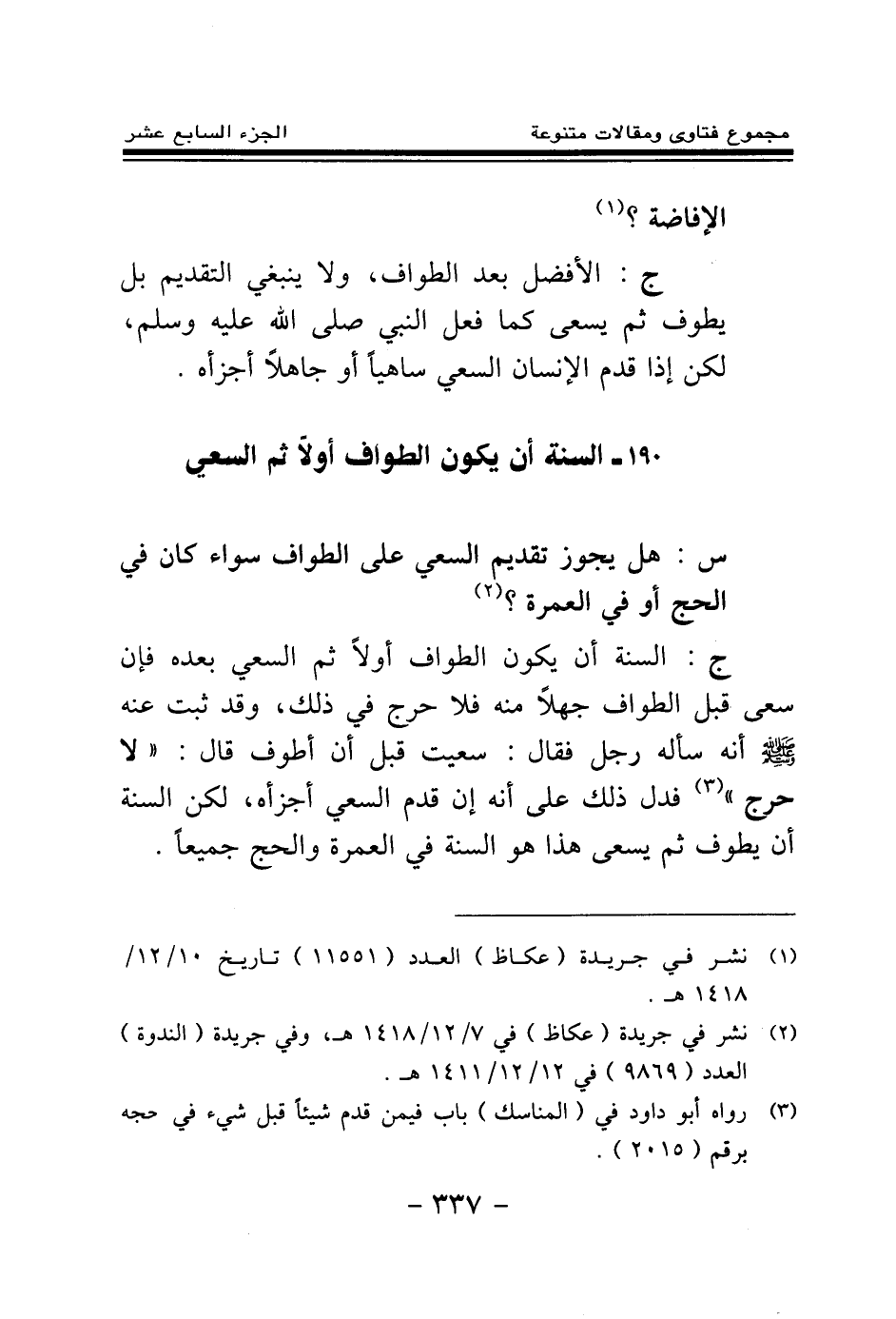190 - السنة أن يكون الطواف أولا ثم السعي